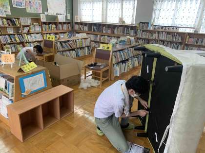 あれ、学校図書館に何やら大きなものが
