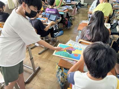 できた作品をみんなで交流しました。友だちの作品の良いところを見付けながら、パズルを楽しみました。「○○さんにいいって言われた!」と喜ぶ様子がほほえましかったです。