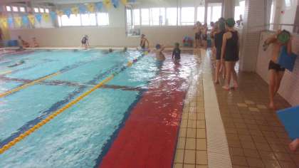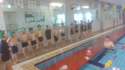 息継ぎ、クロール練習チームです。浮いて立つ練習から始まり、バタ足練習、両手の中に頭を入れて浮きながら進む練習、息継ぎ練習と進みました。水が苦手な子も一生懸命練習しました。