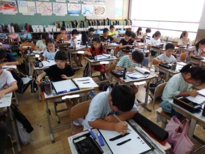 始筆・送筆・終筆の筆の向きに気をつけながら「二」を書きました。