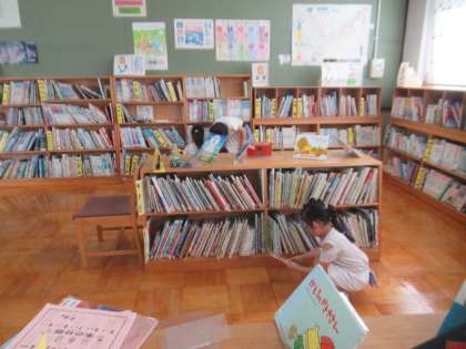 本を選ぶときには国語の学習「お気に入りの本をしょうかいしよう」で使う本を探しました。