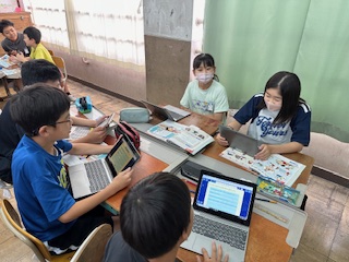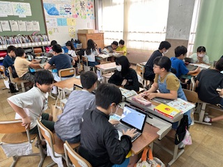 「What time do you get up?」の単元で学んだフレーズを使って「My Day」自分の1日を紹介しました。