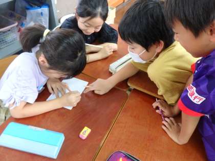 先日、見学をもらったスーパーマーケットの皆さんに向けてお礼のお手紙をグループで書きました。見学をしてわかったことがたくさんあり、時間をかけて感謝の気持ちを文章にしました。