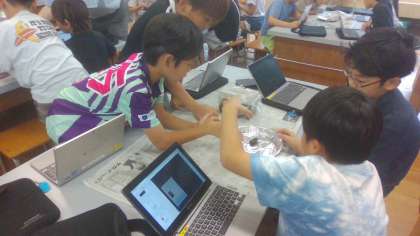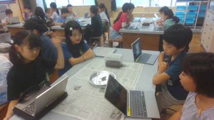 春から観察していた「カブトムシ」。今日は、幼虫だったカブトムシが成長した姿を観察し、夏の動物のようすについてみんなで話合いました。最初は怖がっていた子どもたちも、今では随分慣れたようです。最後には、なぜ夏になると変化するのか、という話になり、気温が高くなることで活発になるということだということが分かったようです。