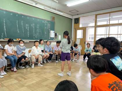係活動、頑張っています。これは、遊び・クイズ係主催の「なんでもバスケット」の様子です。はじめて知る遊びの子が多かったようで、新鮮な気持ちで、楽しんでいます。今後も学級を楽しませるようなイベントを楽しみにしています。