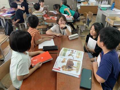 3年生がグループに分かれて話し合っています。