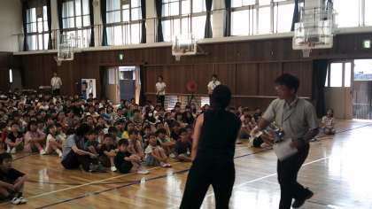 始業式では、元気な校歌の後、校長先生から学校教育目標についての