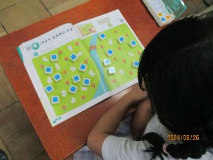 数図ブロックを使って、10より大きい数を数えました。そして、ノートに11から20までの数を書きました。みんなやる気満々で、活気ある授業となりました。