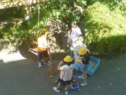 教室や廊下、中庭など、隅々まで綺麗にしていました。