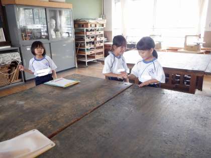 1学期の最後に「別の部屋でも音見つけがしたい。」という声がたくさんあったので、今日は、運動場、体育館、図工室に行って聞こえてくる音を見つけました。「ばんばん」「ぺちぺち」「こんこん」と、見つけた音をたくさん教えてくれました。