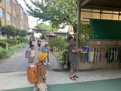 連日、保護者の方々が、朝顔の