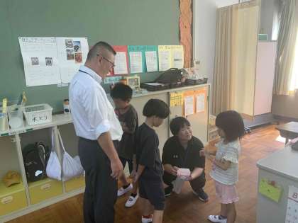 専門主事に夏休みの作品を嬉しそうに