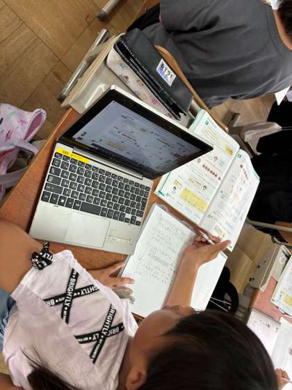 今日は、あまりのある計算の仕方を、10円玉を使って考えました。10円玉で考えると、あまりは2。でも、実際は、その「2」は、10円玉の枚数であるから、あまりは「20円」になる。この数の考え方が、今後の筆算につながります。算数の「式」の意味を、説明できることが大切なのだと、子どもたちに伝わるといいな、と思います。