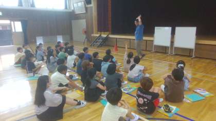 今日の理科は、体育館での実験でした。