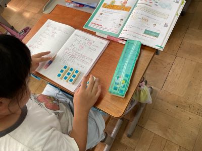 算数の学習では「あまりのあるわり算」の学習が始まりました。最初はブロックの操作をしながらでしたが、その後は九九を使って計算しました。学習内容がだんだん難しくなってきましたがみんなで頑張っていきましょう!