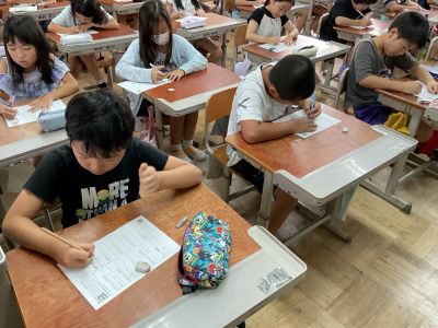 2学期最初の漢字小テストをしました。「う〜ん」とだいぶ悩んでいる様子でしたが、最後まで頑張りました。