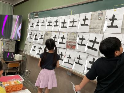今日はたて画に気を付けて「土」を書きました。一筆一筆丁寧に書きました!