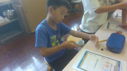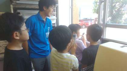 HORIBA製作所が作っている「放射温度計」の貴重な体験をしました。放射温度計は、目に見えない赤外線をはかることができる優れものです。普段はかることができないような、「雲」をはかることができたことに驚く子どもたち。他にも、「水」や「車」、「スプレー」などなど、いろんなものをはかっています。放射温度計すごい!!