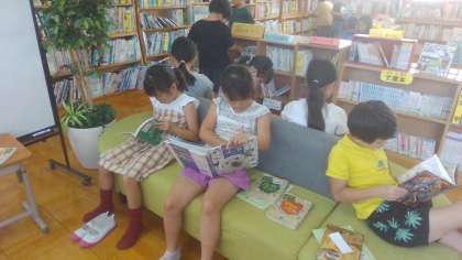 今週も図書館へ行きました。「あくびがでるほどおもしろいはなし」を聞かせていただきました。子どもたちは「え?どういうこと?」と言いながら意味が分かってくると笑いながら聞きました。その後は読みたい本をゆっくり読むことができました。