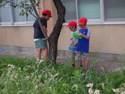 どんな生き物だったらお世話ができるかな?ということで、お世話ができる生き物を見つけに行きました。