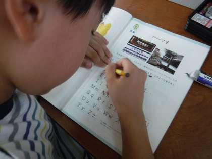4線を意識して書くことは少し難しいですが、教科書のローマ字をなぞりながら確認しました。タブレットのタイピングでも練習してローマ字をマスターしていきたいです。