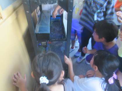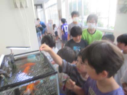 飼育委員会が考えてくれた餌やり体験に2年生の子たちが参加していました。
