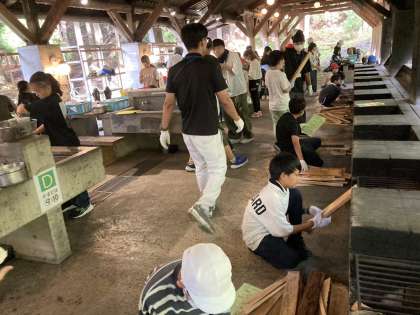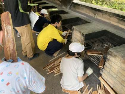 道具を洗ったり、薪を組んだり、自分たちで考えて進めていきます。