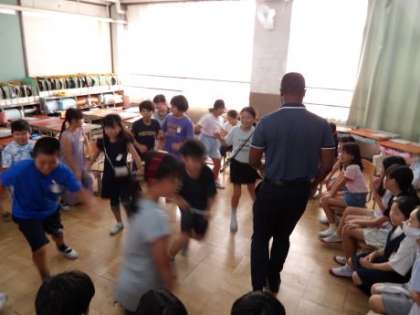 2学期から新たに来られたALTの先生の自己紹介を聞いた後、一緒に「Do you like〜」を使ってなんでもバスケットをしました。子どもたちはALTの先生にたくさん質問をしていました!