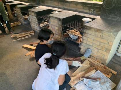 分担してかまどの準備もしています。