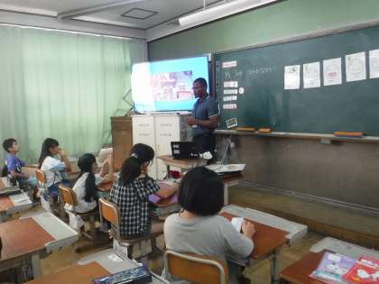 2学期から新しいALTの先生が来てくれています。この日は先生が自己紹介してくれ、先生の事をたくさん知ることができました。また、みんなでフルーツバスケットもしました。これから一緒に学習することが楽しみです。