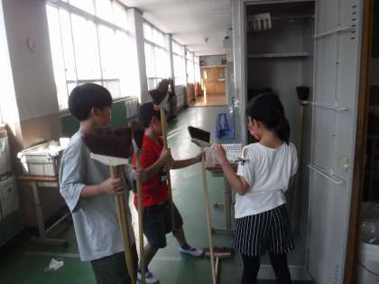 自分から進んで頑張る姿がいいですね!!ほうきをきれいに並べる作業は時間もかかって大変ですが、みんなで協力して頑張ってくれました。