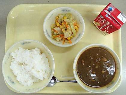 朝から校内にただよう、あまい炒め玉ねぎの香りやスパイシーな香りに、「今日はカレーだ!」とわくわくしながら過ごして、やっとむかえた給食時間。