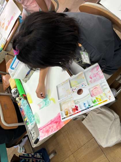 物語から想像したことを絵に表しています。着色の仕方も、子どもたちによって様々で、個性が出ています。