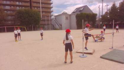 久しぶりの高跳びです。ねらい2に入り、これまで、助走が「3〜5歩」だったのが、「5〜7歩」の距離で、記録に挑戦するというめあてになりました。まずは、助走距離を確認することから始まります。次の時間で最後ですが、新しい記録に挑戦していってほしいと思います。