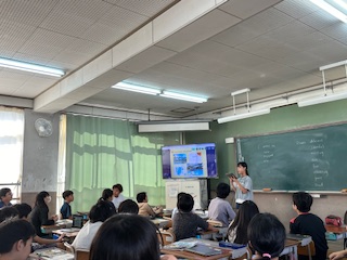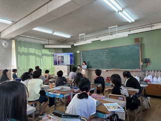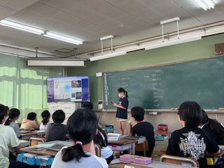 外国語の「My Summer Vacation.」の学習で、自分の夏休みの思い出を発表しました。過去形の表現を使って、いろいろな思い出を話してくれました。