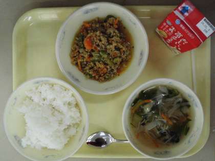 「ガパオ風ライス」はタイの料理で、具をごはんに混ぜていただきました。バジルの葉の香りが特徴的で、味つけにはウスターソースやしょうゆ・カレー粉などが使われていて、独特の風味がありました。