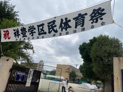 明日の祥豊学区体育祭に向けて、祥豊体育振興会の皆様が中心となって準備をされていました。協力してテントを張ったり、競技や放送の準備をされたりしていて、見ているだけでワクワクしてきました。