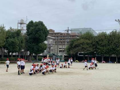 運動場では3年生が体育発表会に向けて