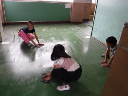 掃除も頑張る3年生です。廊下を一生懸命ぞうきんで拭いてくれたり、玄関前の廊下をほうきで履いてくれたりしています。とても素敵な姿です。