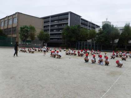自分たちで考えたポーズを練習する子どもたちです。本番の競技の前に簡単なダンスをします。ぜひ子どもたちが考えた踊りやポーズを見てあげてください。