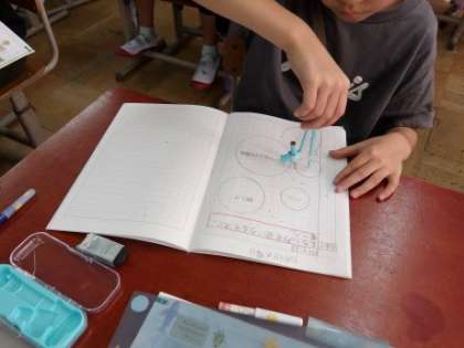 コンパスを使って円をかきました。最初は慣れない様子でしたがだんだん慣れてくると「うまく円がかけた!」と言ってたくさんノートに円をかきました!