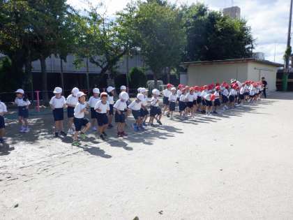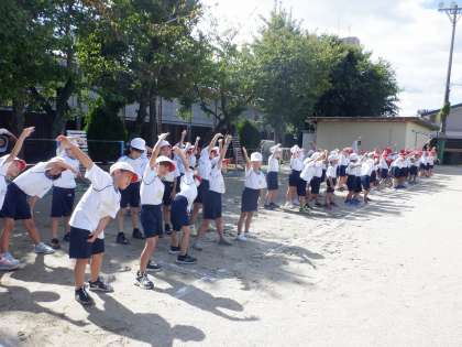 今日は、体育発表会に向けて、1年生強盗で体育をしました。座席に座る場所も確認して、みんなで元気に体操をしました。
