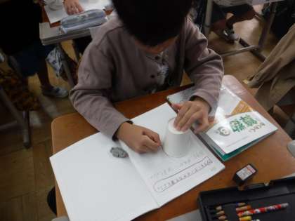 円はコンパスだけでなく、いろいろな方法で描けることを学びました。コップの底を使ったり、厚紙をコンパス代わりにしたり。普段の生活に役立てたい!!と言っていた子もいました。他にどんな方法があるのかまた見つけてみてくださいね。