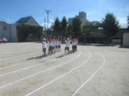 2年 体育 初めて運動場で練習!