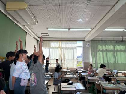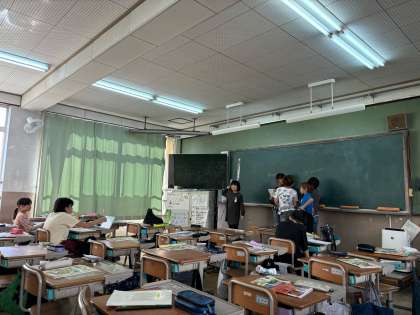 中間休みには、学習係企画のテストが始まりました。黒板の問題を分かった人が解く、というものです。頭の中で問題を解く子が多く、驚きました。