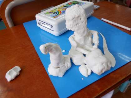 今日は、粘土遊びをしました。誰とどこにお散歩に行きたいか、様子を思い浮かべながら、粘土をひねり出したり、つまみ出したりして作品作りをしました。