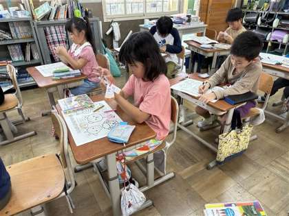 動物にすべて色を塗ると、嬉しそうに見せてくれました。