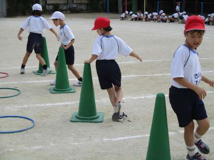 金曜日は、入学して初めての体育発表会です。バラエティー走と50m走を見ていただきます。今から楽しみです。