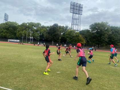 西京極陸上競技場で、「京都南ロータリークラブカップ」が開催され、タグラグビー部の5・6年が出場しました。
