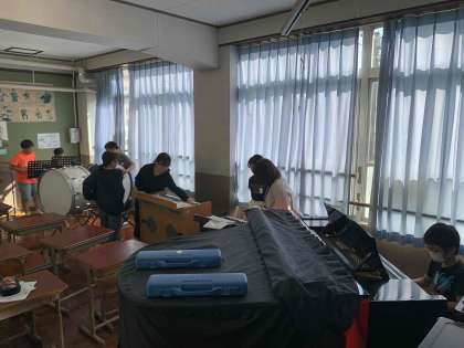 一緒に、5年生が合奏の練習を